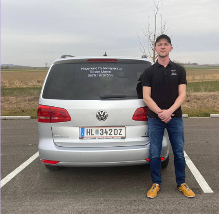 Mein Name ist MARTIN RÖSLER, ich bin gelernter Hagel- und Dellenreparateur aus dem Bezirk Hollabrunn und habe im Juli 2021 meinen Traum von der Selbständigkeit verwirklicht. Dank der Unterstützung des Unternehmens Toyota Frey konnte ich von 2010 bis 2020 auf dem zweiten Bildungsweg an Fachschulungen und Weiterbildungen teilnehmen und in dieser Zeit viel wertvolle Berufserfahrung sammeln.